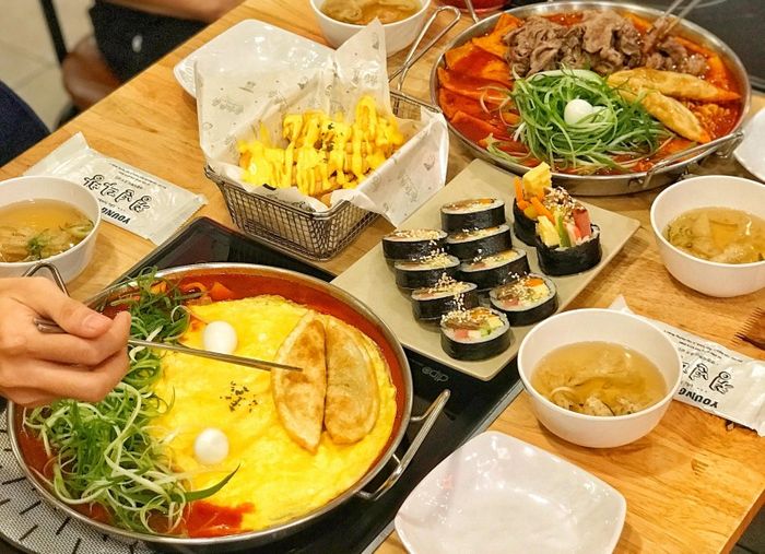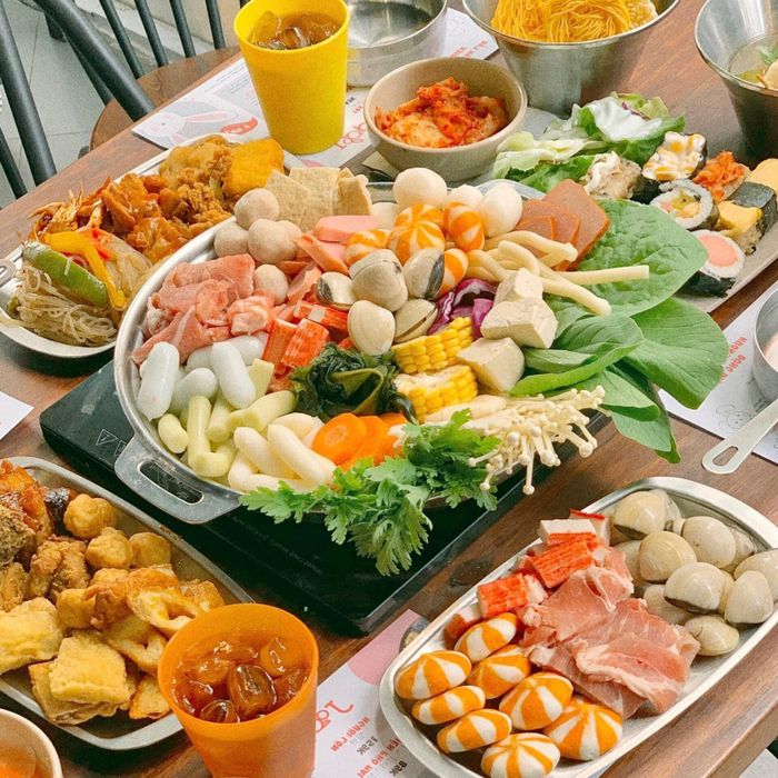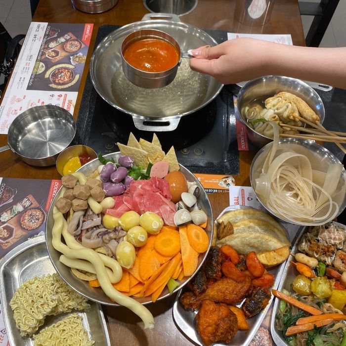 Khám phá không gian ẩm thực Hàn Quốc tại Dookki. Tại đây, bạn sẽ có 1 tiếng 30 phút để thưởng thức lẩu tokbokki với nước lẩu tự chế theo khẩu vị và nhiều loại bánh gạo, topping phong phú. Dookki đã tạo nên cơn sốt trong năm 2019 với ẩm thực độc đáo, nóng hổi. Quán thu hút sự chú ý của nhiều đối tượng, đặc biệt là giới trẻ.