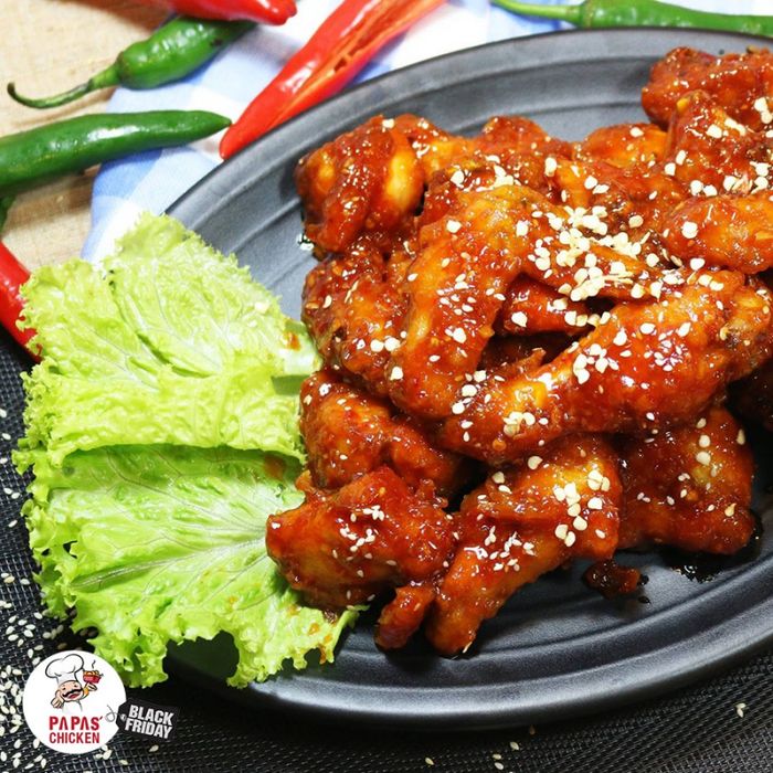 Gà nướng phô mai là đặc sản của Gà Rán Papa's, có thể chọn nửa con hoặc con đầy đủ. Công thức sốt và phô mai tại đây kích thích vị giác, khiến bạn muốn thưởng thức nhiều hơn. Ngoài gà, quán còn phục vụ nhiều món Hàn khác như miến xào, pizza, cơm cuộn.