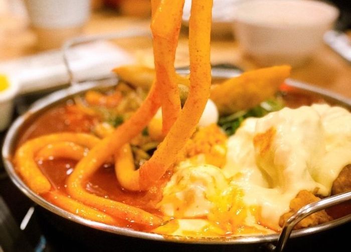 Lẩu bánh gạo topokki tại Dookki đa dạng với cách chế biến và nguyên liệu. Nồi lẩu đầy ắp nguyên liệu tươi mới, từ bánh cá Hàn Quốc, cuộn rong biển Hàn Quốc, mì cay đặc sản QQ, chả cá xiên que, gà cay, hải sản, tempura đến Ramyeon. Tất cả đều là nguyên liệu chất lượng đặc biệt nhập khẩu từ Hàn Quốc. Nhân viên tận tâm hướng dẫn cách pha chế và lấy món tận line. Mặc dù thời gian có hạn nhưng bạn sẽ cảm nhận đầy đủ hương vị trong khoảng thời gian này, đừng bỏ lỡ nhé.