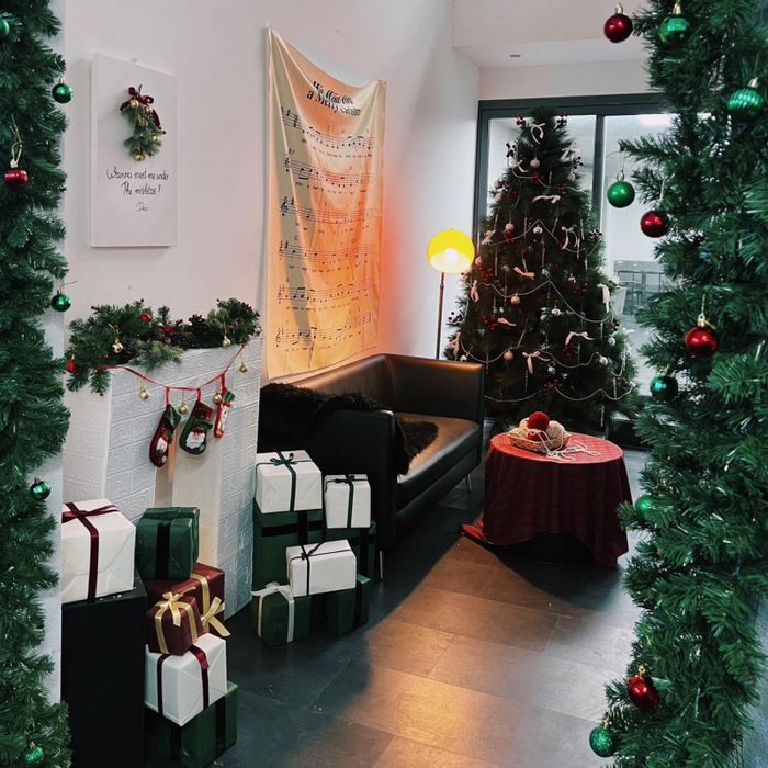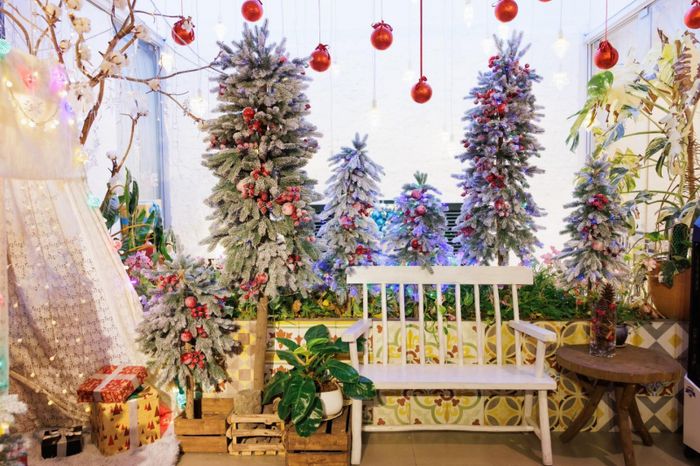 Từ cổng vào, dòng thông thơ mơ, dịu dàng giữa những bông tuyết trắng xoa dịu. Bạn sẽ lang thang trong những rì rào đẹp tuyệt vời, nơi ánh sáng nhỏ lấp lánh trong không gian Noel tuyệt vời. The Bali đã biến hóa thành quán cafe Noel, mặc chiếc áo lụa rực rỡ để chờ đón bạn và những bức ảnh lung linh. Không gian Noel nổi bật với màu sắc xung quanh quán sẽ khiến bạn không thể chối từ việc bắt máy ảnh ngay lập tức.