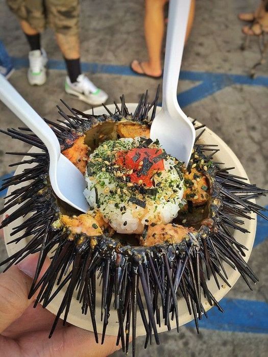 Sea Urchin, also known as sea hedgehog, has a prickly appearance that can cause harm to fishermen if they lack experience. However, hidden deep inside the sea urchin is a layer of quality meat that can be processed into various dishes. The people of Nha Trang create many delicious and nutritious dishes from sea urchins, such as sea urchin porridge. To make delicious sea urchin porridge, you need to choose live sea urchins that have just been caught from the sea. Additionally, sea urchins are also processed into many other unique dishes such as grilled sea urchin with scallion oil, steamed sea urchin mixed with eggs, braised sea urchin served with hot rice, or even raw sea urchin, although not everyone enjoys this dish.