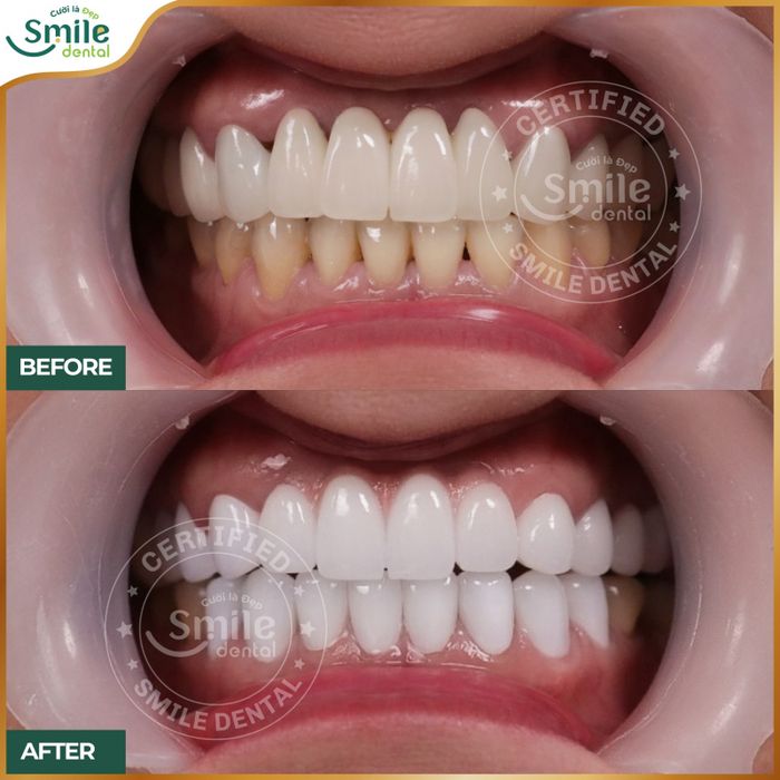 - Tẩy trắng răng: Cải thiện tình trạng răng xỉn màu, răng ố vàng do ảnh hưởng từ chế độ ăn uống, thời gian, hoặc thậm chí do nhiễm kháng sinh mức độ nhẹ.