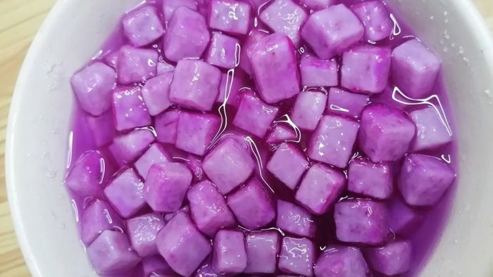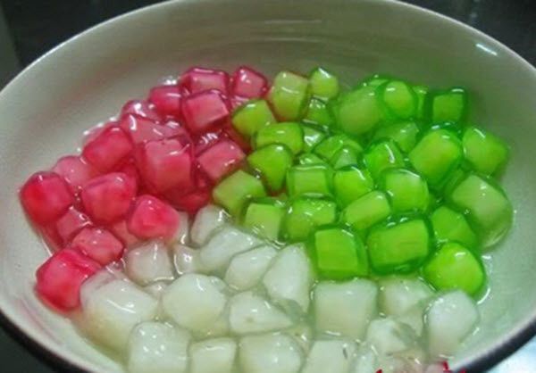 - Pha màu thực phẩm vào chén, tùy theo bạn muốn làm bao nhiêu màu thì chia củ năng làm bấy nhiêu phần và thêm vào những màu sắc mà bạn yêu thích (Màu xanh bạn có thẻ dùng lá dứa nghiền nát rồi vắt lấy nước, màu tím có thể thay thế bằng nước luộc củ dền...)