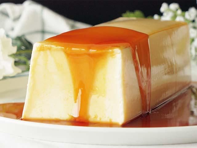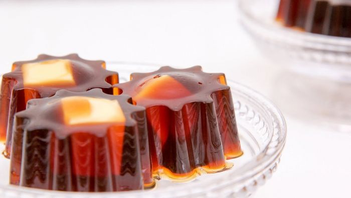 - Đổ một lớp thạch mỏng vào khuôn to, đặt bánh flan vào giữa, và múc thêm thạch để phủ hoàn toàn bên ngoài bánh flan. Để thạch đông lại và thưởng thức.