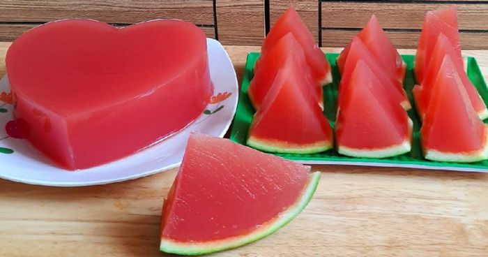 - Đun sôi nước làm thạch và cho bát nước dưa hấu vào khuấy đều đến khi sôi lại, sau đó tắt bếp.