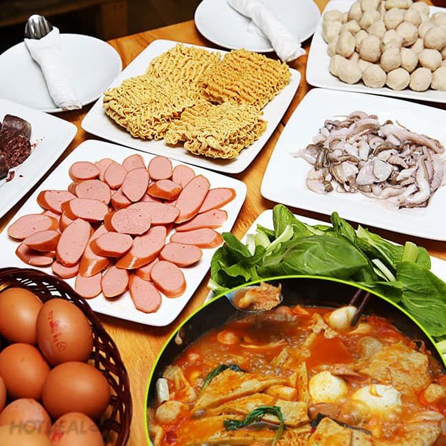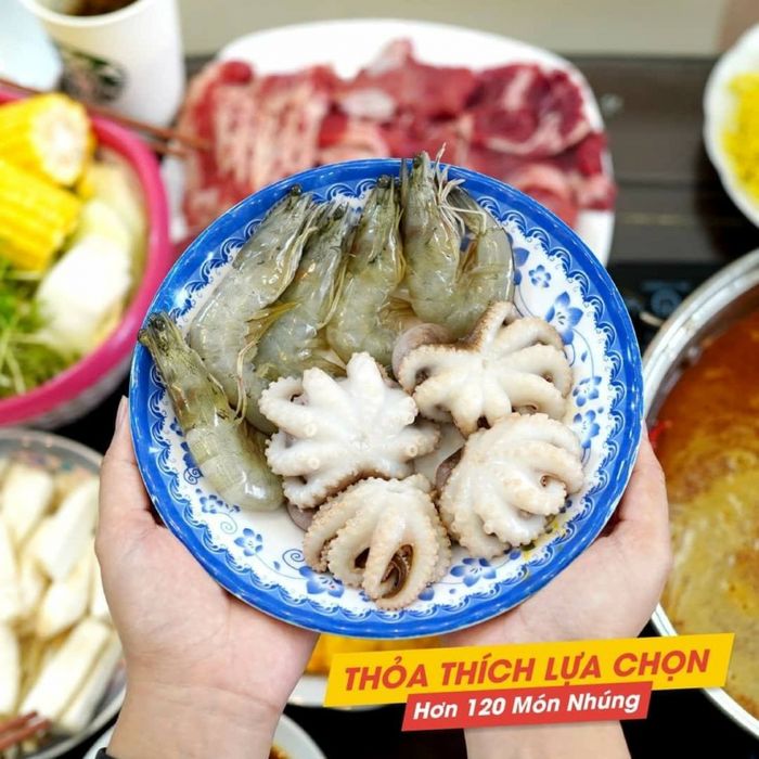Khách hàng sẽ được thưởng thức đến không gian không giới hạn với 3 loại nước lẩu: lẩu Thái, lẩu nấm, và lẩu theo mùa, cùng hơn 100 loại thịt, hải sản nhập khẩu, và rau củ quả tươi ngon như bò Mỹ, lưỡi bò Mỹ, nấm Hàn Quốc... Đồ ăn đi kèm với nước chấm pha theo công thức đặc biệt và những món kèm như sushi, kim chi đậm vị Hàn Quốc.