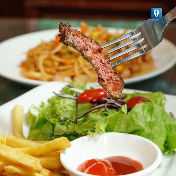 Cutisun - Địa điểm lý tưởng cho những thực khách yêu thích beefsteak kiểu Âu nhưng vẫn muốn giữ vị Việt khi đến thăm Hà Nội. Với thiết kế và trang trí theo phong cách Pháp, Cutisun tạo nên không gian ấm cúng, lịch sự để thưởng thức ẩm thực. Bạn sẽ được thưởng thức một phần beefsteak tuyệt vời với thêm salad rau, khoai tây chiên và bánh mì. Đặc biệt, các loại xốt như tiêu đen, BBQ, và phô mai sẽ làm tăng vị ngon của thịt bò, khiến mỗi thớ thịt trở nên thơm ngon và mềm mại. Cutisun không chỉ phục vụ bít tết bò mà còn có thịt cừu, sườn heo và mỳ. Với giá cả hợp lý, quán là sự lựa chọn tuyệt vời cho bữa ăn ngon và tiết kiệm tại Hà Nội.