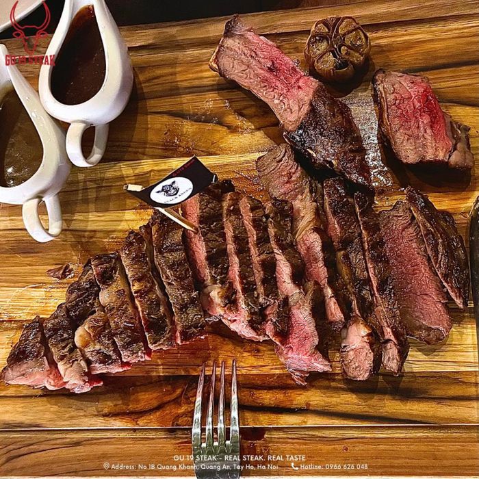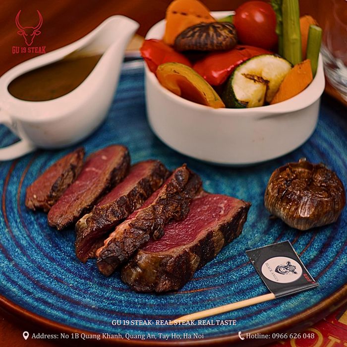 GU 19 Steak - Nơi hội tụ ẩm thực và không gian tinh tế. Với sức chứa lên tới 100 người, quán mang đến không gian ấm cúng, lịch sự, là lựa chọn hoàn hảo cho các sự kiện quan trọng. Thưởng thức Steak chuẩn Mỹ và rượu vang trong bầu không khí lãng mạn, bạn sẽ có trải nghiệm tuyệt vời.