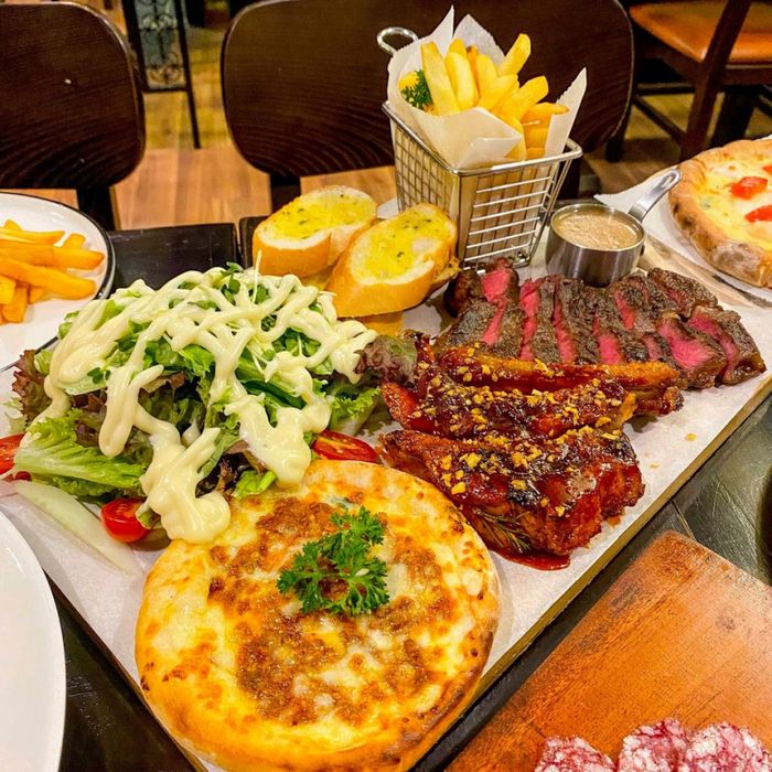 Soho Steak - Điểm hẹn quen thuộc của học sinh, sinh viên với không gian sang trọng và bít tết ngon. Với mức giá tầm trung, bạn có thể thưởng thức những bữa ăn đậm chất thịt bò trong không khí trẻ trung và thoải mái. Ngoài bít tết, Soho Steak còn độc đáo với pizza, mì ý, cá hồi, mang đến sự đa dạng cho thực đơn.
