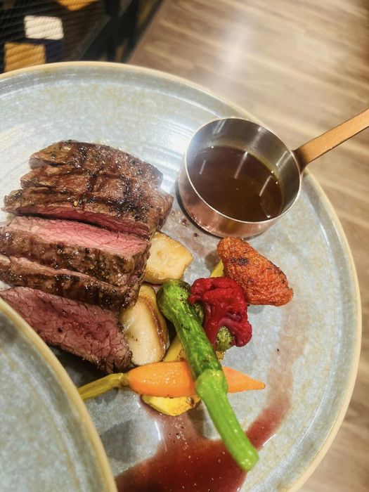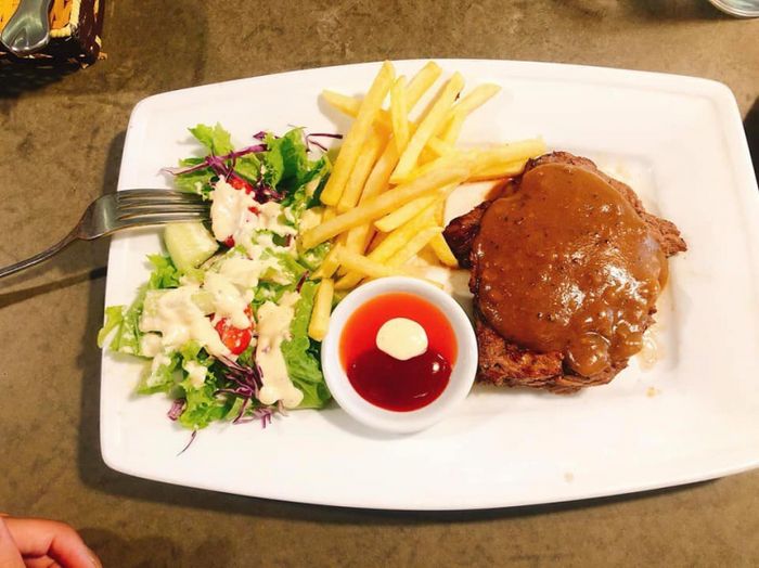 Phần bít tết tại đây chín vừa, thịt mềm, ngon miệng, đi kèm với salad và khoai tây chiên giòn. Sốt có hương vị đặc trưng, làm tôn lên hương vị thơm ngon của thịt bò. Dù phần ăn không quá nhiều nhưng đủ để thưởng thức, đặc biệt phù hợp cho những người muốn thưởng thức beefsteak một cách nhẹ nhàng. Bêtô Bistro & Tealounge là địa điểm lựa chọn tuyệt vời cho bữa ăn ngon và trải nghiệm ẩm thực độc đáo.
