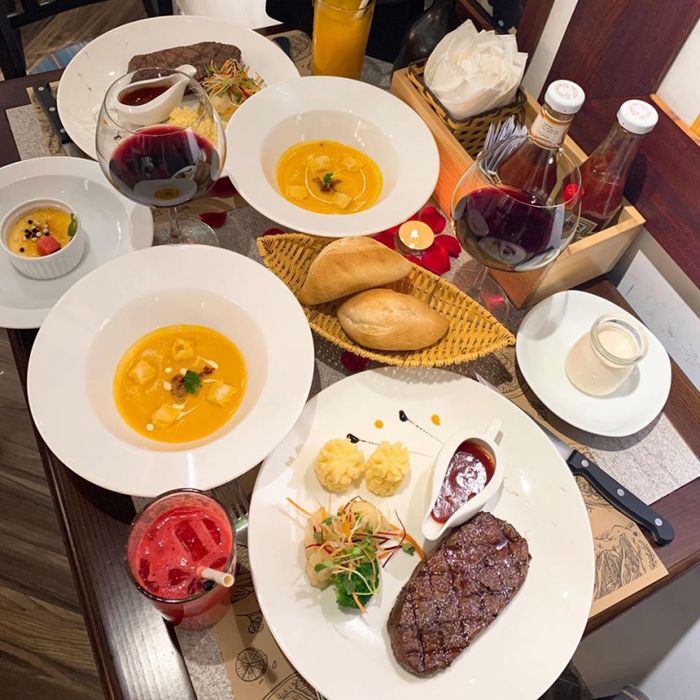 Le Monde Steak là chuỗi nhà hàng bít tết theo phong cách đô thị Pháp, mở ra trải nghiệm ẩm thực pháp lý và đắm chìm trong không gian mở gần gũi với thiên nhiên. Một điều đặc biệt tại Le Monde Steak là khi bạn đặt món bít tết, bạn sẽ được thưởng thức một combo gồm súp, bít tết và đồ tráng miệng. Những món ăn tại đây không chỉ ngon miệng mà còn được trang trí đẹp mắt, tạo điểm nhấn cho bức ảnh số của bạn. Với không gian sang trọng, Le Monde Steak đứng vững giữa các nhà hàng bít tết kiểu Âu giá bình dân.