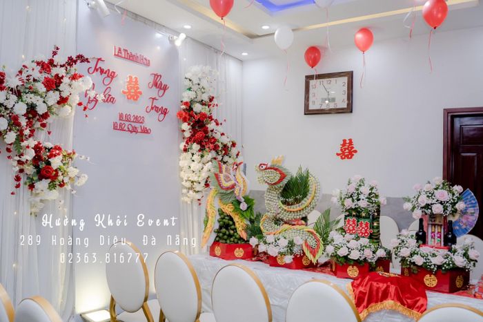 Bằng sự hài hòa về màu sắc, cân đối về bố cục, và sự linh hoạt trong cách kết hợp từng loại hoa, Hường Khôi Event tạo ra những sản phẩm nghệ thuật, góp phần làm đẹp cho ngày trọng đại của đôi uyên ương. Từ chiếc cổng hoa đến những tấm rèm, từ chiếc bàn đến chiếc ghế, mọi thứ đều được trang hoàng tinh tế, tạo nên không gian tràn ngập vẻ đẹp sang trọng và quý phái.