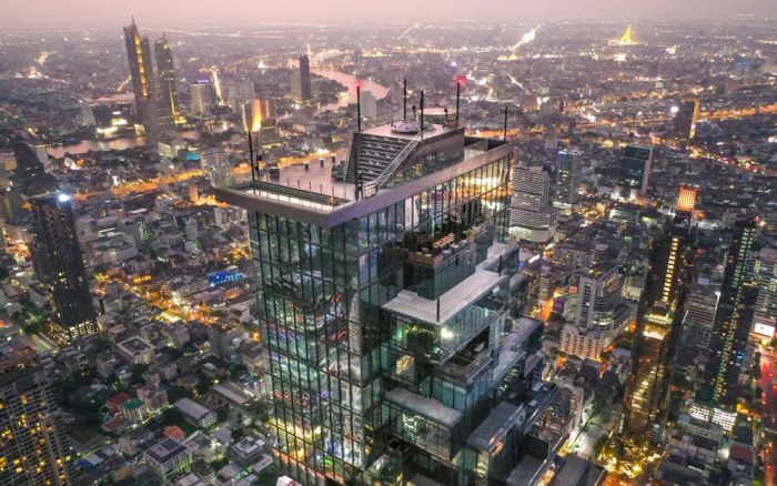 Đài Quan Sát Mahanakhon SkyWalk nằm tại tầng 74 và 78 của tòa nhà King Power Mahanakhon, là điểm đến du lịch nổi tiếng của Thái Lan với độ cao lên đến 314 mét. Bạn có thể trải nghiệm đi bộ giữa không trung trên sàn kính, tạo ra những khoảnh khắc độc đáo và không thể quên.