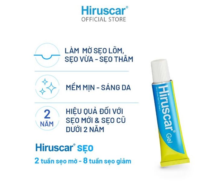 Chăm sóc làn da với Kem trị sẹo Hiruscar - Gel độc đáo không chỉ giúp cải thiện hiệu quả cho sẹo mới và sẹo cũ dưới 2 năm mà còn thích hợp cho mọi loại sẹo mức độ vừa. Sử dụng đều đặn theo hướng dẫn để giảm mờ sẹo, làm sáng và làm mềm da. Mua ngay tại link: [Link sản phẩm Hiruscar]