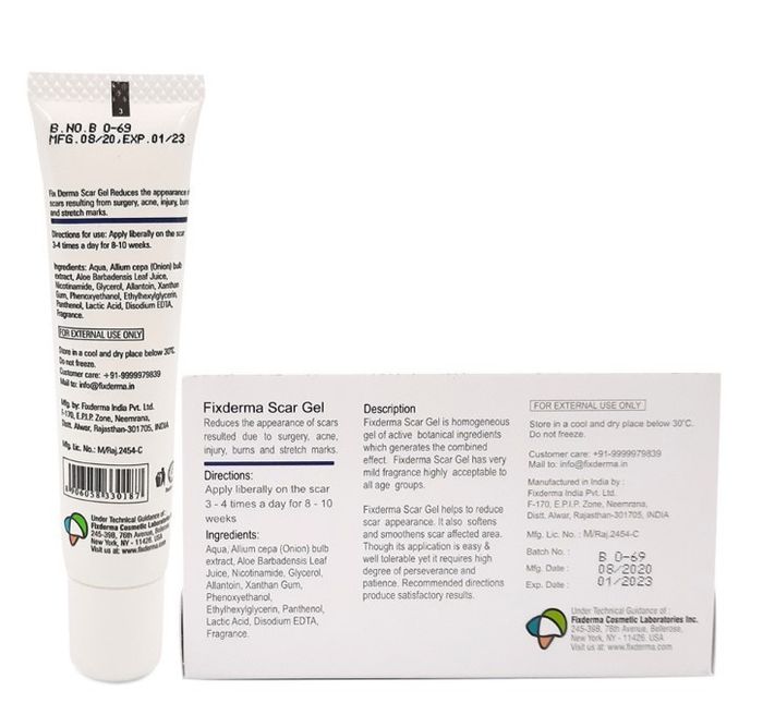 Fixderma Scar Gel có tác dụng hỗ trợ làm mờ các vết thâm, vết sẹo do mụn để lại, các vết sẹo do bỏng, do rạn da, do vết thương, hay do phẫu thuật. Gel trị sẹo Fixderma Scar giúp vùng da bị tổn thương do sẹo trở nên mềm mại, đều màu và mịn màng hơn.Fixderma Scar gel được sản xuất tại đất nước Ấn Độ.