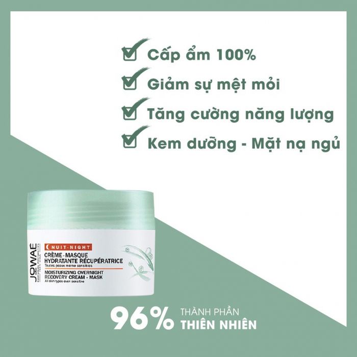 Mặt nạ khoáng Jowae là sự kết hợp hoàn hảo giữa làn da và khoáng chất tự nhiên. Với chất chống oxy hóa Lumiphenols, trà xanh, perlite siêu nhỏ và chiết xuất quả hắc mai biển, sản phẩm cung cấp dưỡng chất và độ ẩm cho làn da, giúp da luôn mềm mại, đàn hồi và săn chắc. Hướng dẫn sử dụng đơn giản, chỉ cần thoa đều mặt nạ trước khi đi ngủ, để qua đêm và sáng hôm sau, bạn sẽ có làn da tươi mới.