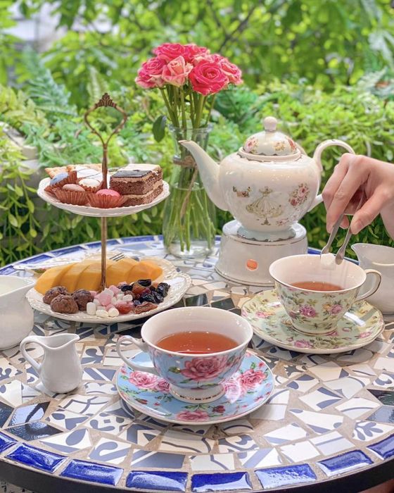 Five O'clock Tea offers a super sweet and charming atmosphere nestled in the heart of the bustling city. This tea and coffee shop has become a favorite spot for those seeking dreamy, delicate photos, with its interior inspired by European fairy tale tea parties. As soon as you step inside, you'll be drawn to the unique, rose-filled decor. The café spans four floors, with each level showcasing a different concept, carefully designed by the owner.