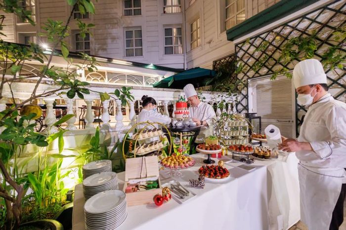 Afternoon tea at Metropole is served at La Terrasse du Metropole – a charming café located along Ngô Quyền Street, wrapping around Lê Phụng Hiểu Street and overlooking a lovely garden. Upon first glance, one might mistake it for a slice of Paris nestled in the heart of Hanoi. The entire space feels like a luxurious glass conservatory, filled with natural light, making it an ideal setting for stunning photos.