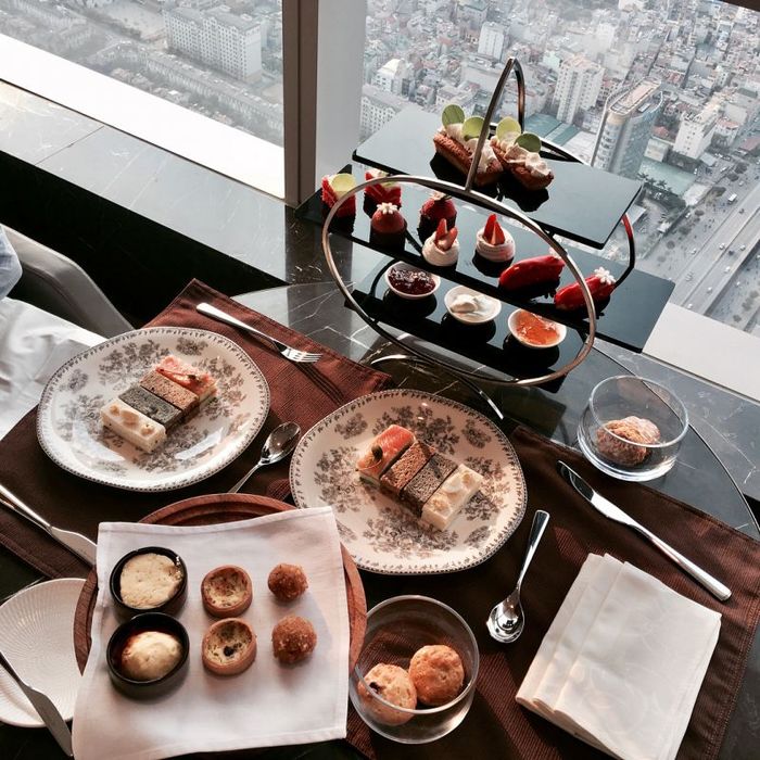 Located in the tallest building in the capital, The Hive Lounge is a popular spot for those seeking a luxurious afternoon tea experience. Here, you can enjoy the warm sunlight streaming through the large glass windows on the building's upper floors, offering a stunning view of Hanoi’s streets while savoring high-quality teas and European-style pastries.
