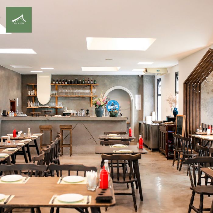Không gian của Della Seta cũng là một điểm lợi thế lớn. Thiết kế đơn giản với 2 tone màu trắng xám tạo nên vẻ đẹp thanh lịch, làm cho nhà hàng trở thành địa điểm lý tưởng cho các buổi hẹn hò và sum vầy cùng người thân yêu.