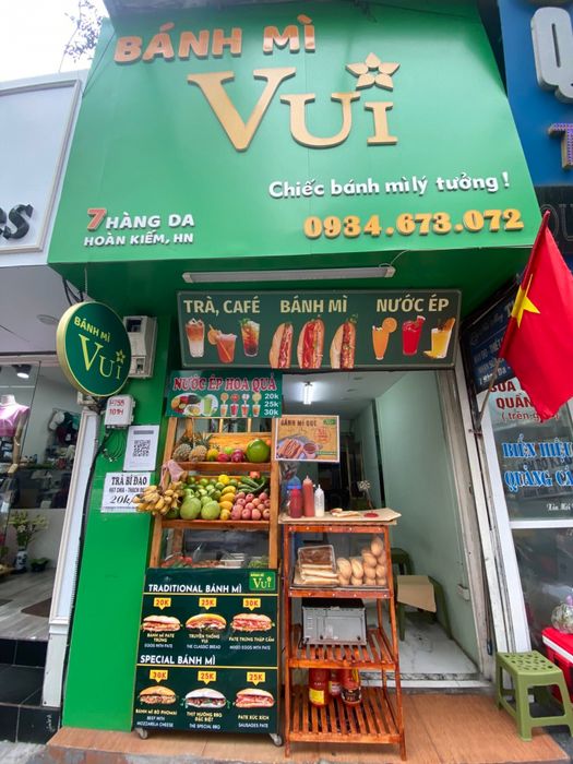 Nếu bạn muốn thưởng thức những chiếc bánh mì phong phú với nhiều loại topping, hãy đến với Bánh mì Vui. Quán đã mở hai chi nhánh tại Hà Nội và luôn đón khách hàng với hương vị và chất lượng đặc trưng. Menu đa dạng từ bánh mì truyền thống như pate trứng, thập cẩm, xúc xích đến những loại đặc biệt như bò phô mai, gà nướng hành tỏi, thịt nướng BBQ. Nhân bánh được làm từ thực phẩm sạch, an toàn, người làm chế biến chuyên nghiệp để mang đến hương vị hấp dẫn nhất.