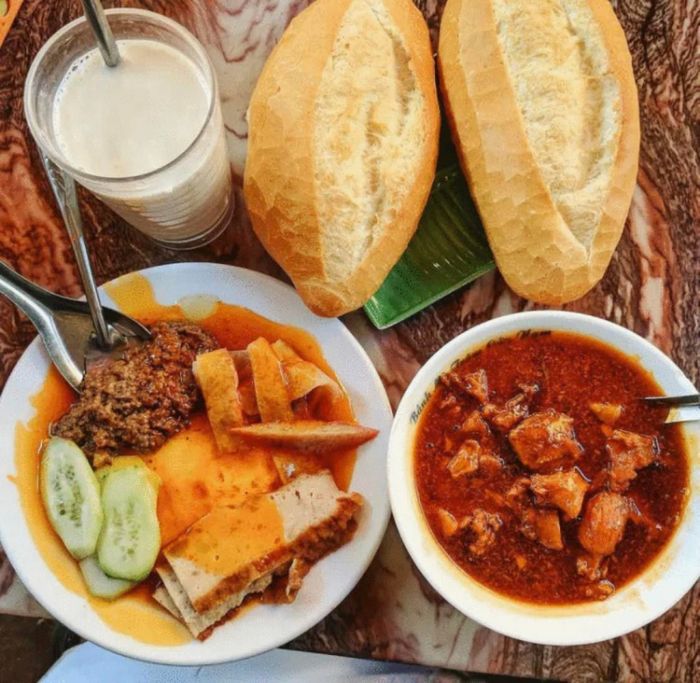 Bánh mì chảo tại đây đơn giản nhưng ngon miệng, với pate và trứng ốp la cháy cạnh, kèm theo nộm dưa chuột. Pate được rán giữ hương vị béo ngậy và thơm của hạt tiêu. Khách hàng có thể lựa chọn trứng ốp lòng đào hoặc chín theo ý thích. Ngoài ra, quán còn phục vụ bánh mì sốt vang, hấp dẫn với sốt vang thơm ngon, thịt bò mềm mịn và nước sốt đậm đà. Món này thích hợp cho những ngày lạnh gió. Quán cũng cung cấp đa dạng đồ uống như coca, sữa đậu, sữa ngô, trà đá để kết hợp với bánh mì.