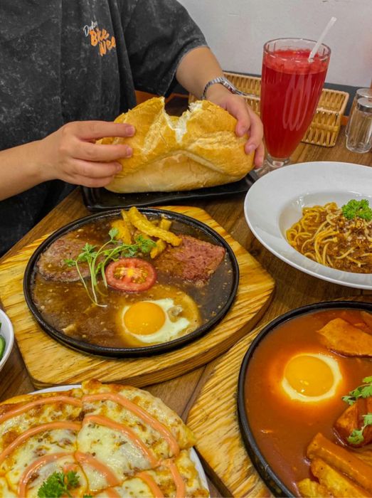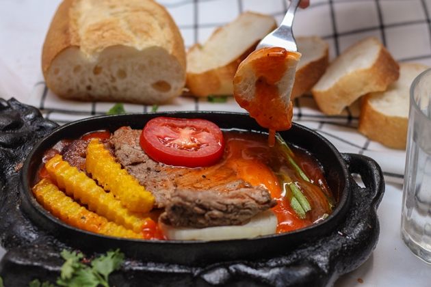 Đặc biệt, quán hấp dẫn sinh viên với giá cả hợp lý. Menu đa dạng từ chảo thường đến chảo đặc biệt, bò bít tết đủ làm hài lòng mọi khẩu vị. Phần topping đầy đặn trong chảo và nước sốt độc quyền tạo nên hương vị đặc trưng. Quán có không gian 2 tầng thoáng mát và sạch sẽ, tầng 2 có thể ngắm phố đi bộ Hồ Đắc Di.