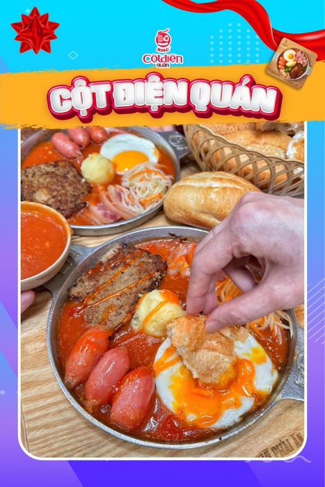Một suất bánh mì chảo đầy đủ có giá từ 50.000 đồng với pate thơm, béo béo bùi bùi, trứng ốp vừa chín hơi lòng đào, thịt heo ướp đậm đà, khoai tây nghiền cùng với nước sốt chua ngọt độc đáo. Tất cả cùng hòa quyện vào nhau tạo nên hương vị tuyệt vời chắc chắn sẽ làm hài lòng bất kỳ ai đến thưởng thức. Chỉ gọi một suất bánh mì chảo như vậy thôi là bạn đã no căng bụng rồi. Vào mỗi dịp lễ, Tết, khai trương cửa hàng mới, Bánh mì Chảo Cột Điện sẽ có các chương trình tri ân dành tặng cho thực khách khi đến mua bánh mì tại quán. Bạn có thể được mua bánh mì đồng giá cực hạt dẻ, hay mua bánh mì tặng nước uống, giảm 10-20% trên tổng menu,... Vừa được ăn ngon lại còn được nhận những ưu đãi tuyệt vời như này thì còn chần chừ gì mà không ghé ngay Cột Điện quán thôi nào!