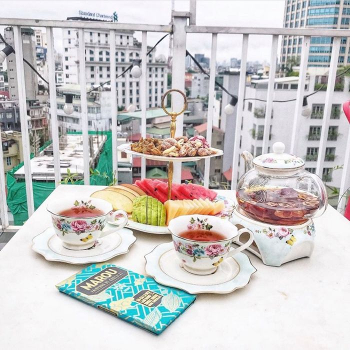 Lofita Drinks - Yêu Vị Đầu Tiên, quán cafe với tầm nhìn cao cấp đang là địa điểm nổi tiếng nhất hiện nay, đáp ứng đầy đủ nhu cầu 'sống ảo', là tên nổi bật nhất trong danh sách này. Đây là một quán cafe trên sân thượng mới mẻ, vô cùng đẹp và chuyên phục vụ các món ăn 'healthy' giữ dáng, tốt cho sức khỏe. Đồ uống được làm từ các thành phần tự nhiên như hoa quả tươi, mật ong, cam thảo, trà, các loại hoa,... và đặc biệt là không chứa đường. Ngồi cùng bạn bè tận hưởng ly cà phê luôn là trải nghiệm tuyệt vời nhất, vì chỉ có 'họ' mới hiểu những câu chuyện, áp lực cuộc sống, hay đơn giản là lắng nghe và tâm sự. Một tách cà phê có thể giúp bạn bắt đầu một ngày mới tràn đầy năng lượng và hạnh phúc. Ở Lofita, bạn có thể thưởng thức những tách cà phê được trang trí tinh tế, chắc chắn rằng một tách Latte thơm ngon hoặc một tách Cappuccino bồng bềnh ở đây sẽ làm cho bạn si mê mãi mãi. Không chỉ là nơi có đồ uống tốt cho sức khỏe, Lofita còn nổi bật với cửa sổ rộng lớn, ban công với tầm nhìn ra đường phố bên dưới, và không khí mở cửa nhẹ nhàng. Lofita Drinks - Yêu Vị Đầu Tiên đang là địa điểm hot nhất để giới trẻ check-in với khung cảnh như trời tây. Bên cạnh ban công rộng lớn, không gian bên trong được thiết kế ấm cúng với tông màu nâu tây, cùng với khu vực chụp hình độc đáo với những chiếc ghế hồng bánh bèo đáng yêu. Đặc biệt, Lofita còn có set trà bánh nhỏ với 10 loại trà thảo mộc và hương thơm nhẹ nhàng, mỗi set bánh đều đi kèm với đĩa bánh 2 tầng gồm bánh cookie, hạt và trái cây, tạo nên bức tranh trải nghiệm đẹp mắt.