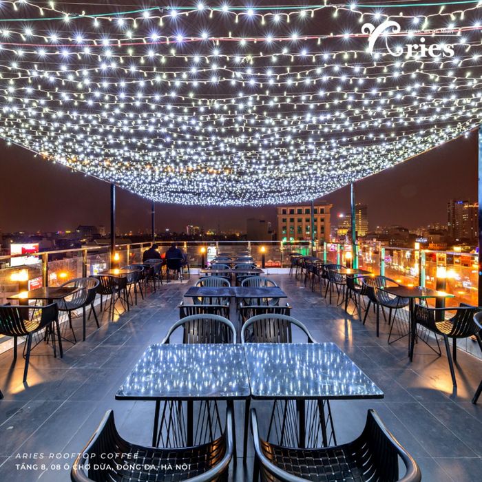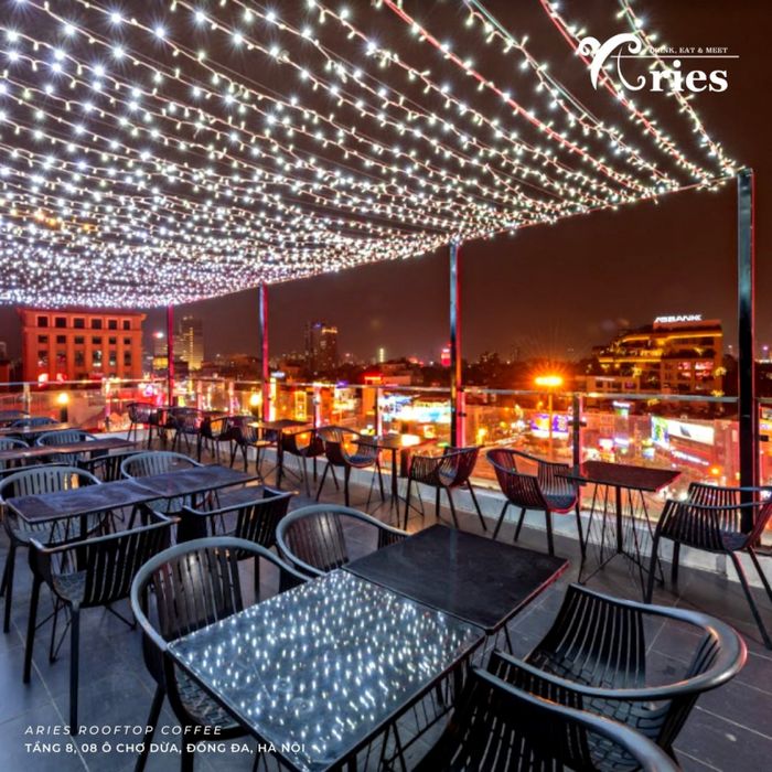Aries Rooftop Coffee - không gian lãng mạn dành cho những đôi tình nhân. Sắp đến ngày kỷ niệm, bạn đang bối rối không biết làm gì? Đừng để tình cảm lạnh đi, hãy làm cho ngày đặc biệt thêm phần ấm áp với không gian lãng mạn được chuẩn bị từ Aries Rooftop Coffee: Menu đặc biệt cho cặp đôi, trang trí không gian đẹp mắt và đồ uống phong phú, cùng không gian tầng thượng thoáng đãng, là lựa chọn tuyệt vời để ngắm pháo hoa. Dù Hà Nội trở lạnh, Aries Rooftop vẫn sẵn lòng chào đón bạn với không gian đầy nắng và thân thiện. Không gian rộng rãi với cửa sổ lớn, ban ngày đón nắng, đêm xuống lung linh với ánh đèn dịu dàng - mọi điều này tạo nên bức tranh ấm áp, lãng mạn. Có gì tuyệt vời hơn khi thưởng thức một cốc đồ uống ấm áp trong không gian lung linh như thế?