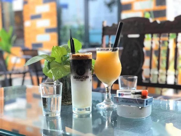Because it's located in an alley, Moon Cafe is very quiet, suitable for you to sit and work, study, or gather with friends, chat without being overwhelmed by the noise of traffic outside. The cafe has both outdoor and indoor spaces. The outdoor space is designed to make you feel like you're lost in an ancient village with old wooden tables and chairs, old bamboo tables and chairs, and bamboo curtains. Young couples looking for a space of their own for a date can choose a table in the partitioned area.
