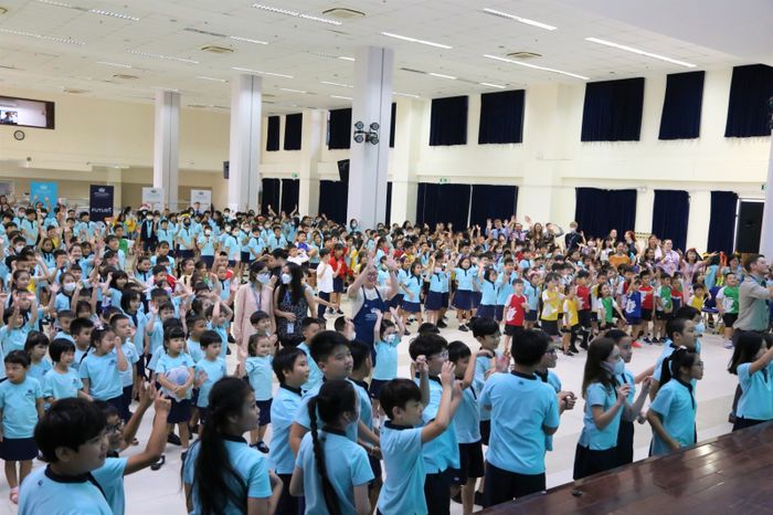 - Sân cỏ lớn để chơi thể thao và học thể dục.