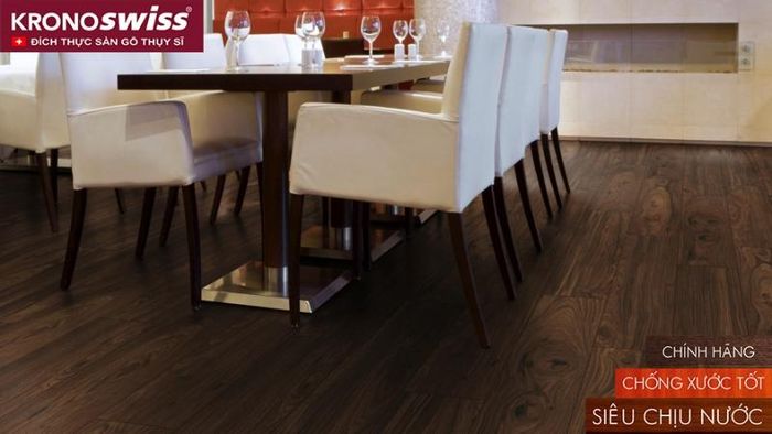 Kronotex engineered wood flooring is made from high-quality pine wood, imported directly from Germany. Meeting European standards, Kronotex floors are eco-friendly and always use clean materials with an E0 certification, ensuring no recycled materials are involved. These floors are not suitable for high-moisture environments, so it's essential to maintain dry conditions. Care should be taken not to spill water or use overly wet cleaning cloths. Kronotex flooring is perfect for modern European-style interiors in Vietnam. The product has been available in over 80 countries, including Vietnam since April 2002.