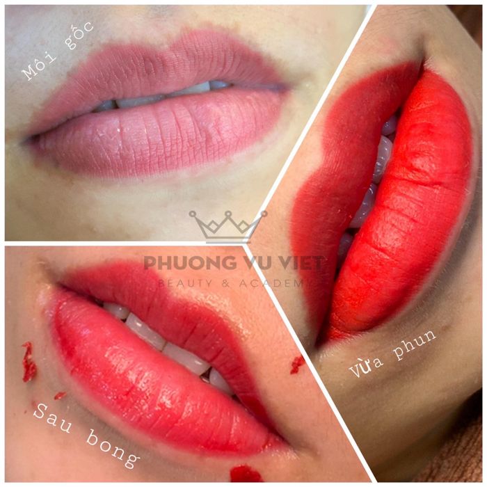 Quá trình phun xăm tại Minh Quỳnh Anh Beauty & Academy được thực hiện chặt chẽ từ việc phân tích đôi môi, dáng mày cho đến lựa chọn màu phun phù hợp. Kết quả sau phun lên màu chuẩn, bền, và tự nhiên, giúp khách hàng tỏa sáng với vẻ đẹp rạng rỡ.