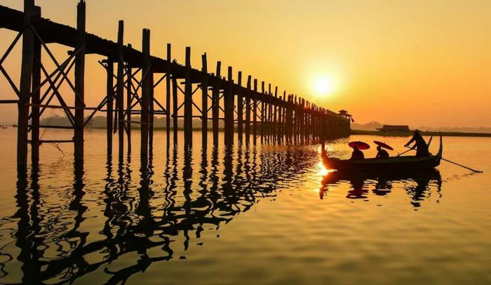 Cầu Ubein ở ngoại ô thành phố Mandalay - Cây cầu gỗ tếch lâu đời nhất thế giới, hòa mình trong không gian tĩnh lặng của hồ Taungthaman.
