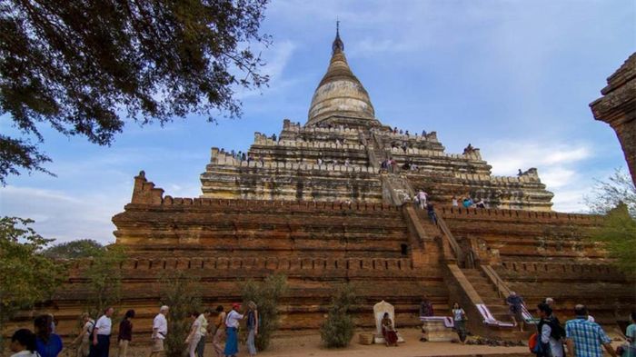 Nằm trong danh sách những địa điểm du lịch hàng đầu tại Myanmar, đền Shwesandaw là địa điểm tuyệt vời để bạn thưởng thức cảnh hoàng hôn trên dòng sông Irrawaddy. Tại đây, bạn có cơ hội ngắm nhìn vẻ đẹp toàn cảnh của vùng đất Bagan huyền thoại với hàng ngàn đền tháp, tô điểm bởi ánh chiều tà quyến rũ, tạo nên khung cảnh ấn tượng và huyền bí khi mặt trời chìm.