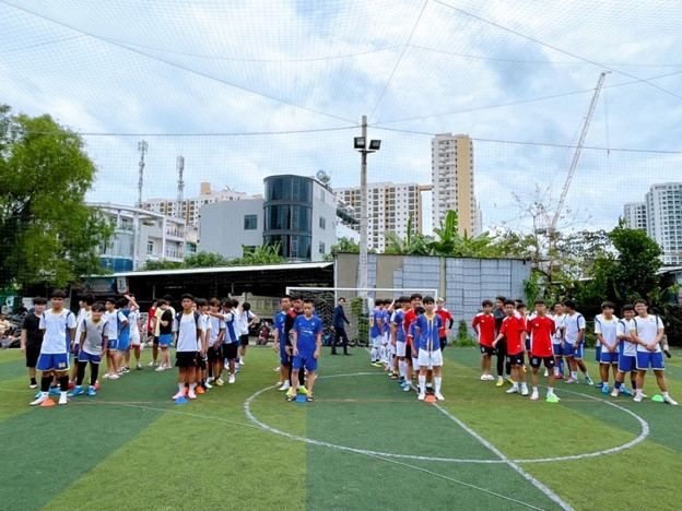 The coaching team at Duong Minh Football Center includes instructors and students from the Football Department of the University of Sports and the University of Education in Ho Chi Minh City, professional football coaches, and former professional players with extensive competition experience. Participants in the courses will improve their physical fitness, develop ball control skills, learn football techniques, offensive and defensive strategies, free-kick tactics, and more.