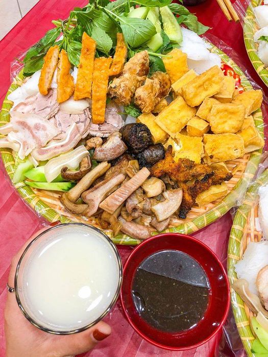 Mẹt bún đậu tại Bún Đậu Cây Đa đầy đủ với đậu rán, chả cốm, chân giò luộc, giả cầy, dồi, lòng non, dạ dày, bún và rau thơm. Thịt chân giò thái mỏng, luộc chín vừa, giữ được độ thơm và ngọt của thịt. Đặc biệt, đậu rán vàng ruộm, cắt vuông vức là điểm độc đáo. Mắm tôm được chọn lựa kỹ và chưng chín, đảm bảo vị ngon và vệ sinh tuyệt đối, làm nổi bật bữa ăn.