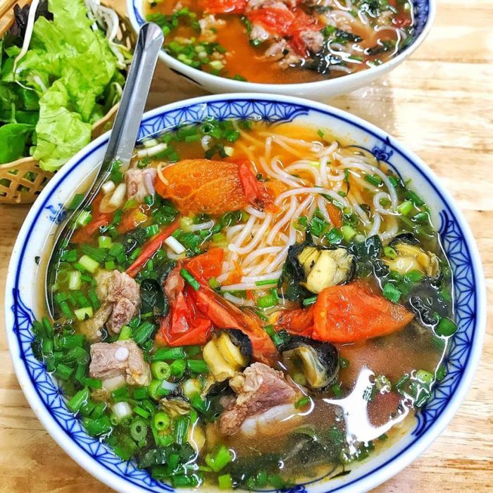 Thực khách khen ngợi bún ốc sườn tại Quán bún ốc sườn Cô Sáu: 'Ốc lẫn và ốc đẫy mồm, nước dùng chua nhẹ thanh thanh, ăn kèm với quẩy giòn giòn.' hoặc 'Bún có mắm tôm, nước phê lòi rún, ốc to ốc nhỏ, sườn chắc và nhiều thịt.'