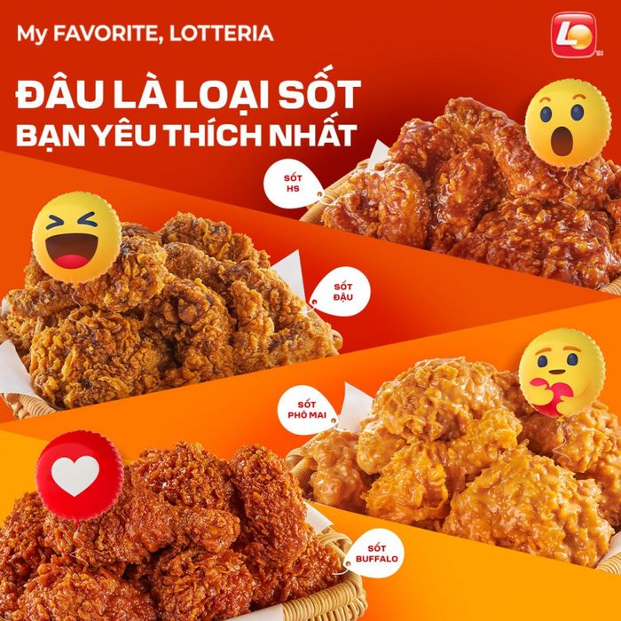 Thế Giới Ẩm Thực Lotteria là một trong những chuỗi cửa hàng thức ăn nhanh nổi tiếng, mang đến nhiều món ăn với hương vị đặc trưng. Thương hiệu chú trọng vào đa dạng sản phẩm, chiếm lĩnh thị trường Việt Nam với thực đơn phong phú từ Gà rán, Gà sốt đậu, Gà sốt H&S, Gà sốt phô mai đến Burger, Khoai tây lắc, Mực rán và cơm phần kiểu Việt Nam. Mọi món đều ngon, hấp dẫn, kết hợp cùng tương cà và tương ớt để tạo nên hương vị đặc trưng.