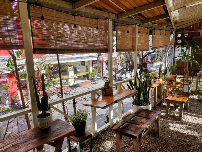 Quán cà phê với không gian yên bình, mang đến trải nghiệm thư giãn và thưởng thức cà phê ngon. Nơi đây còn có đồ uống đa dạng và đồ ăn nhẹ phong phú, kèm theo vườn hoa và khu vườn rộng lớn cho bạn thư giãn và chụp ảnh.