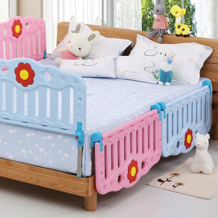 - Thứ nhất, trẻ có thể ngã từ trên giường xuống khi biết lẫy hoặc bò, giải pháp là sử dụng thanh chắn giường mà bạn có thể tìm kiếm trên mạng.