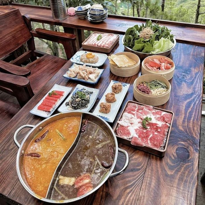 Furthermore, at Thông Giông Hotpot Restaurant, the food is of high quality, but the prices are very reasonable. The dining space is truly spacious, airy, making it easy for you to have a lively party with friends or gather a large group. In addition, the staff at Thông Giông Hotpot Restaurant are all young, agile, ensuring excellent service for each customer, even if you come with a large group. In this transitional period to the rainy season, enjoying a delicious, hot pot with a dreamy pine forest view is unmatched.