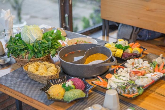 The menu boasts a plethora of grilled and hotpot dishes, infused with the distinctive flavors of Da Lat, catering to the diverse palates of patrons. When it comes to hotpot, Starry Delights offers a variety of choices, ensuring the broth is meticulously prepared to perfection, with all the essential flavors harmoniously combined. Additionally, the restaurant serves an array of fresh, vibrant toppings sourced from the pristine surroundings of Da Lat, guaranteeing a delightful and unforgettable experience. For an extra touch, indulge in the exquisite flower wine alongside the grilled meat for an unforgettable culinary escapade.
