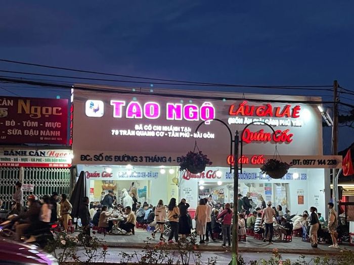 While dining, you'll savor the firm chicken, abundant bamboo mushrooms and mushrooms, and ample vermicelli. The sour and spicy hot pot broth is irresistibly flavorful, enhanced with a hint of chili to make it both tasty and aromatic. Despite the bustling atmosphere, the staff's service is highly rated; even though the place is crowded, they manage to serve with remarkable speed. In the chilly weather of Da Lat, gathering with family or friends to enjoy hot pot at Chicken Hot Pot - Tao Ngộ Quán Đà Lạt is truly incomparable.