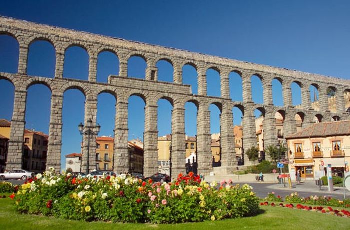 Cầu máng ở Segovia không chỉ dài nhất trong số các công trình La Mã cổ đại ở Tây Ban Nha mà còn lưu giữ phong cách kiến trúc La Mã. Với chiều dài 728m và chiều cao 28m, cây cầu này đã trải qua hàng thế kỷ, từ thời Hoàng đế Domitianus cho phép xây dựng đến thời kỳ hồi giáo Moor và cuối cùng được UNESCO công nhận là di sản kiến trúc thế giới năm 1985.