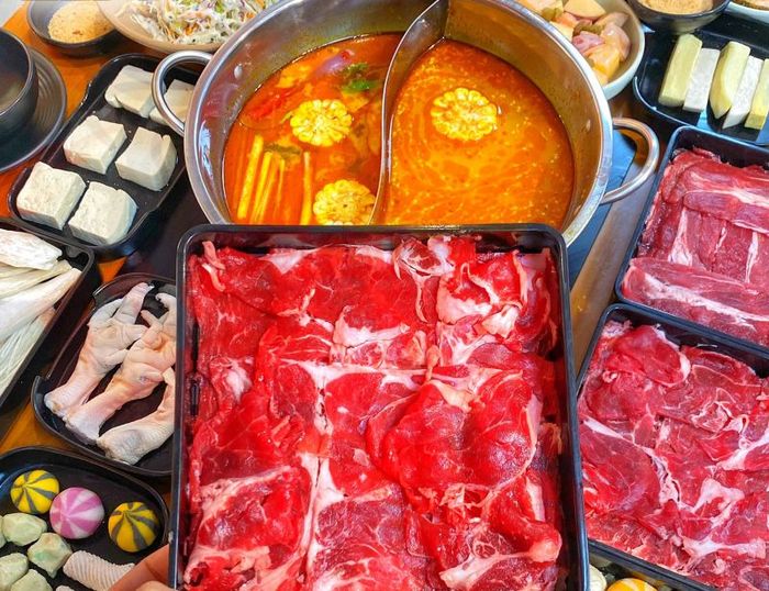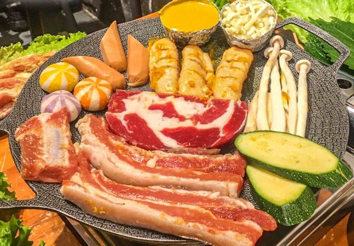 At Yukssam - Korean BBQ & Hotpot Buffet, you can enjoy authentic Korean BBQ with a diverse menu of premium meat at reasonable prices. For about 300k, you can indulge in a feast. The restaurant also serves other dishes such as sushi, various hotpots, and delicious cold noodles. The delicate cooking methods preserve the aroma, flavor, and nutritional value. Don't forget to explore the Korean dishes offered by the restaurant to understand more about the cuisine of the Land of Kimchi.