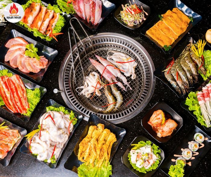 Buffet Lẩu Nướng Nhất Nhất tự hào với những món nướng là 'ngôi sao' của bữa tiệc. Thực khách sẽ phải kinh ngạc trước sự tươi ngon và đa dạng của thịt bò, thịt heo, hải sản như Gáy heo Hàn Quốc, Nạc vai heo, Nầm heo, Ba chỉ heo, Ba chỉ bò Mỹ cuốn nấm, Vai bò Úc, Ba chỉ bò Mỹ, Bắp bò Mỹ, Thăn ngoại bò Mỹ, Hàu sữa nướng mỡ hành, Bạch tuộc... mỗi loại đều được chế biến tinh tế và hấp dẫn.