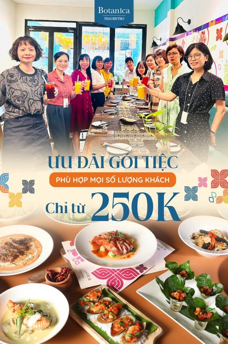 Tiếp đón tháng mới, Botanica Thai bistro là điểm đến lý tưởng cho buổi tiệc liên hoan. Thực đơn đa dạng với hơn 50 món ăn đặc trưng Thái Lan, giá chỉ từ 249K/người. Không gian hiện đại, ấm cúng, là nơi lý tưởng cho các cuộc họp mặt, gặp gỡ bạn bè và đồng nghiệp.