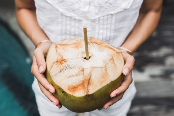 Uống nước dừa đúng cách giúp giảm béo bụng và làm eo thon.